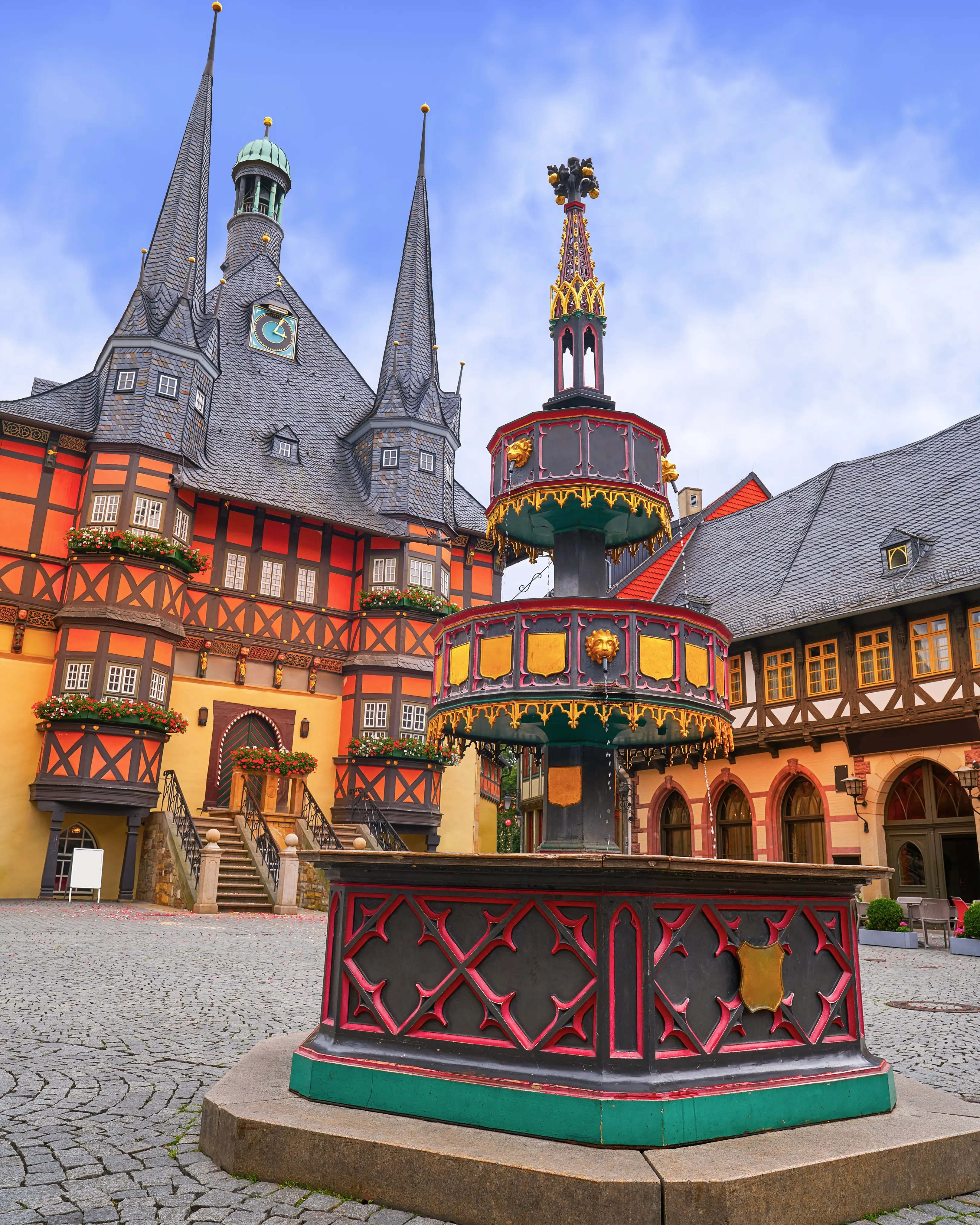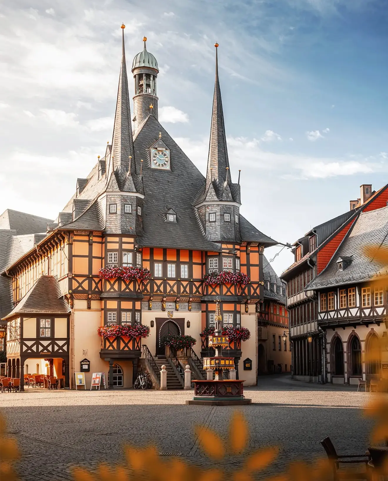 Разноцветные фахверковые дома, аккуратные дворики и величественный замок на холме создают атмосферу гармонии и уюта.