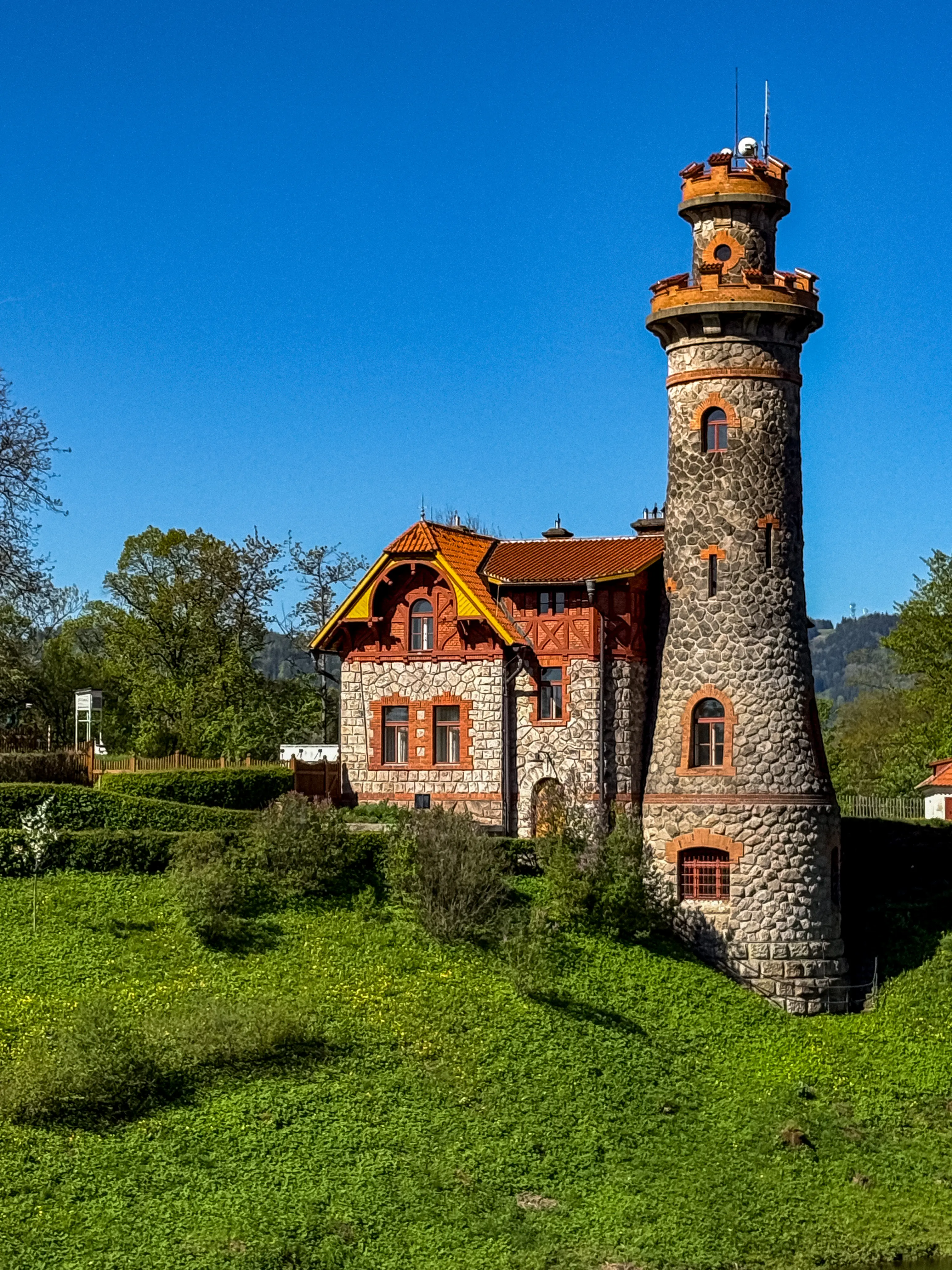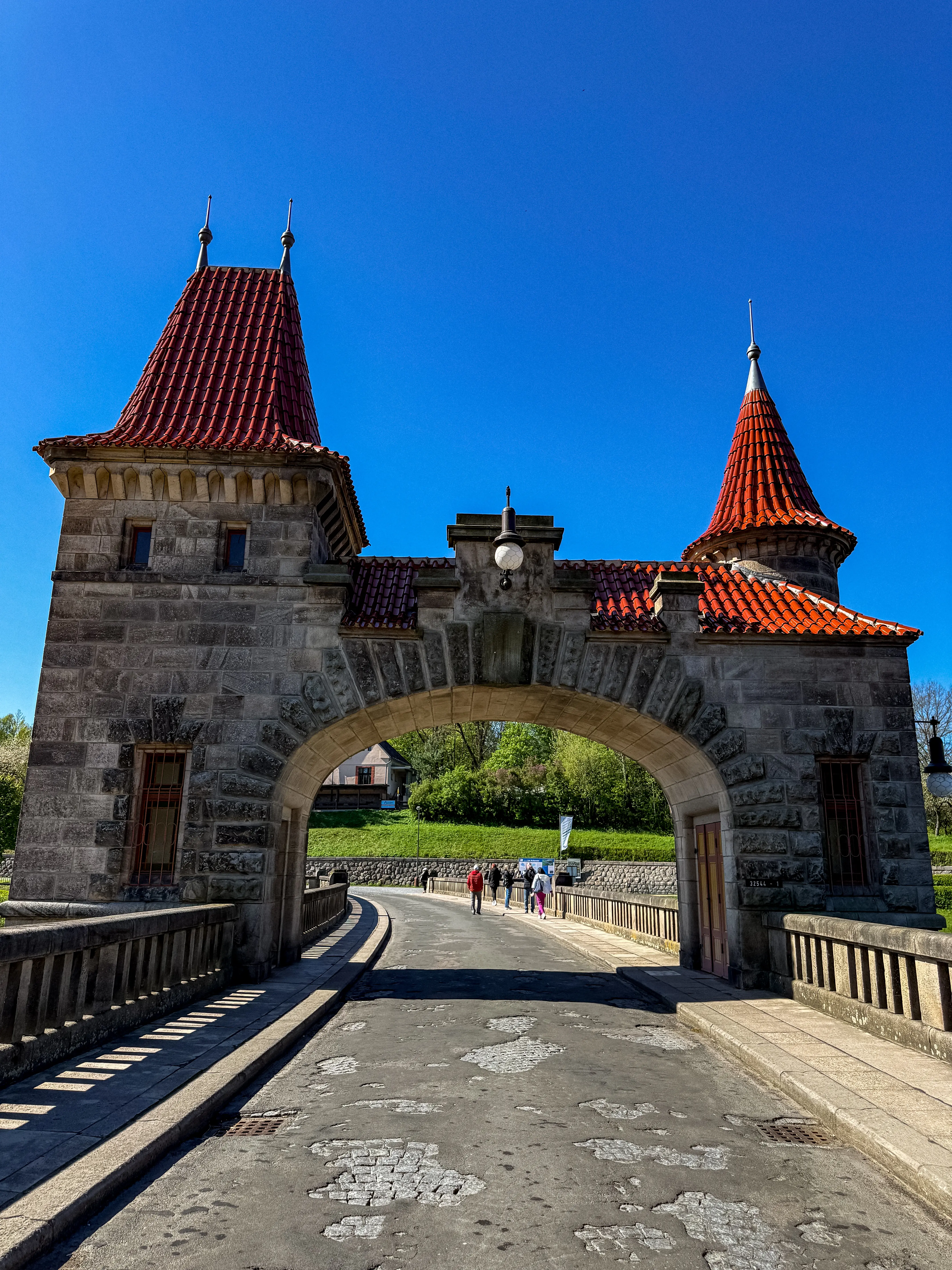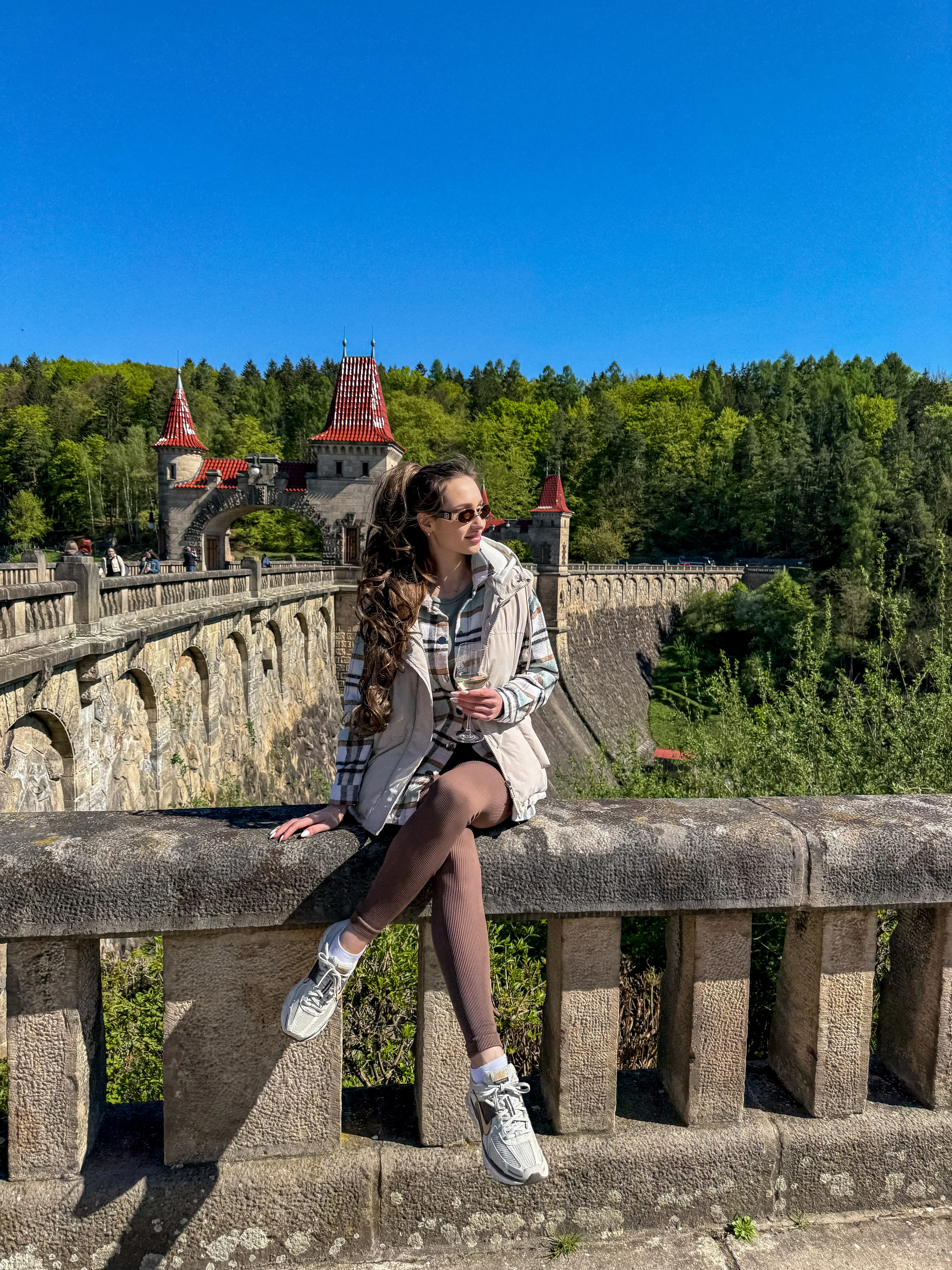 Величественная готическая дамба из розового песчаника - словно сошла со страниц фэнтези-романа. Башенки, арки, отражения в воде - всё выглядит так, будто вот-вот появятся рыцари и драконы.